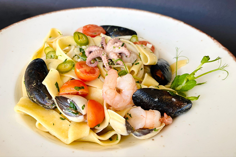 Scoici în cochilie, vongole albe, baby caracatiță, inele calamar, creveți, usturoi, unt si ulei de măsline