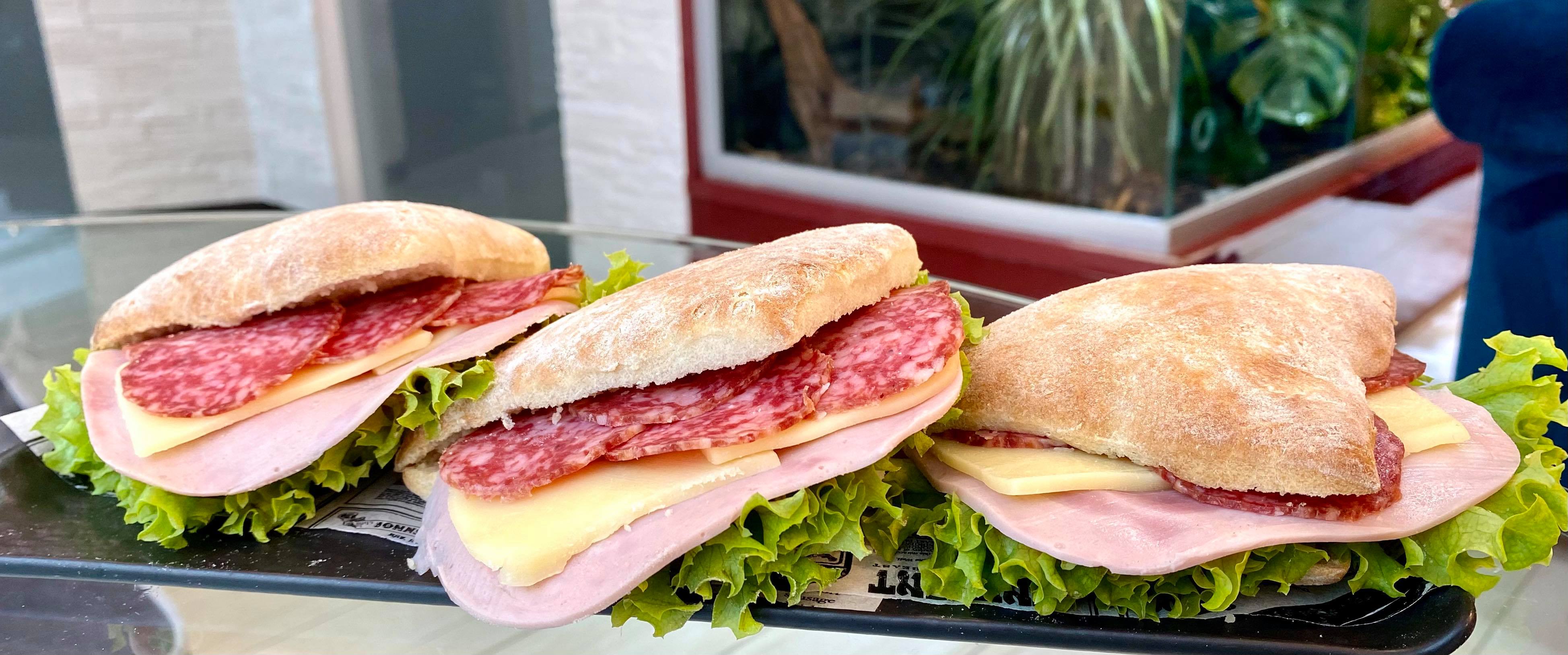 Salam, șuncă, cașcaval, salată verde, cremă de brânză